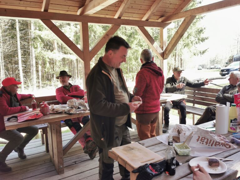 Es steht der 12.04.2025 im Kalender, ein Tag wie man ihn nicht besser für den Start in die Prüfungssaison 2025 des SHVD hätte planen können. Schon beim Aufbruch in aller Frühe wurde das angekündigte schönste Wetter durch einen sternenklaren Himmel und kräftigsten Mondschein bestätigt. Der bei der Fahrt einsetzende Sonnenaufgang und das äsende Rudel Damwild am festgelegten Treffpunkt untermalte einen idyllisch werdenden Tag. Am Treffpunkt angekommen wurden wir von Gerd Struck begrüßt. Durch sein Engagement und die Planung konnten wir alle gemeinsam diesen erlebnisreichen Tag verleben. Vielen Dank dafür.